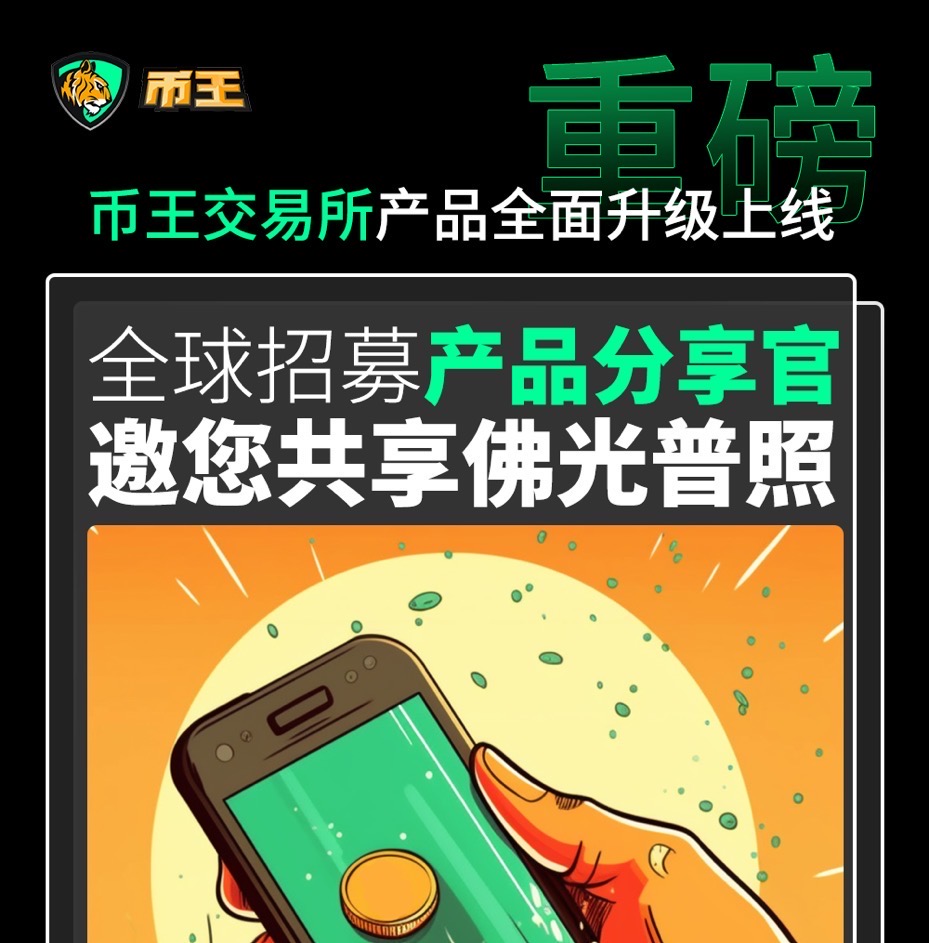 币王交易所产品全面升级上线,全球招募产品分享官,共享佛光普照!